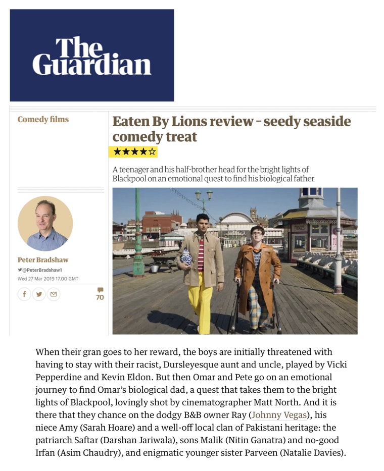 Eaten by Lions looks good too, with cinematographer Matt North making the most of the Blackpool, Bradford and Manchester locations. It captures a flavour of these places today, which could be a bit of an eye-opener for London audiences.